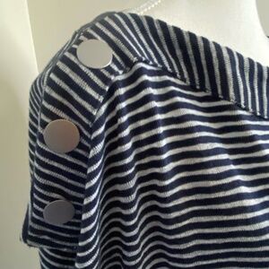 Jones New York Navy Blue/White Stripe Boatneck Top