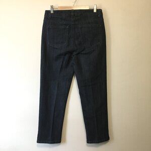 Very good preowned condition, dark navy blue 'Lexington' cuffed capri by Jones New York. Features 2 pockets on front and back, zipper and button closure. Great overall fit and quality.