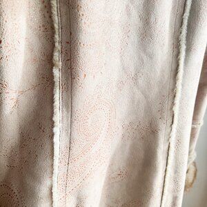 Faux suede with a subtle paisley print. Fully lined with faux fur .