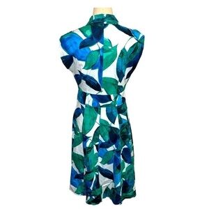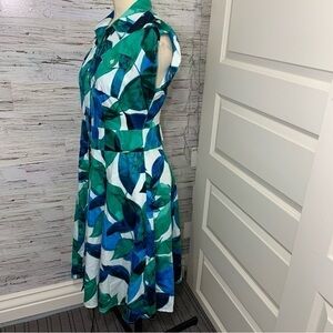 Jones New York Fit Flare Midi Dress Sz 4 Blue Green White Tropical Button Front