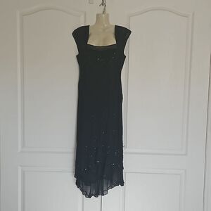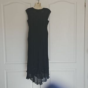 Jones New York Ladies Silk Cowl Neckline Beaded High Low Midi Dress Size6 Black