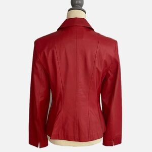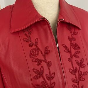 Jones New York Red Leather Embroidered Jacket in great pre-owned condition.