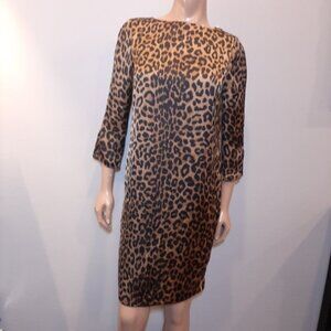 Jones New York Leopard Shift Dress Silky 3/4 Sleeve Zip Shoulder Womens Size 6