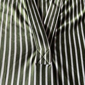 Pretty sage/olive green and cream striped top with luxurious satin-like finish. Classic and versatile blouse from Jones New York that can be worn tucked in or loose over pants/skirts.