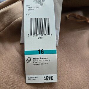 Tan / Toast Color. Classic fit, new with tags, never worn.
