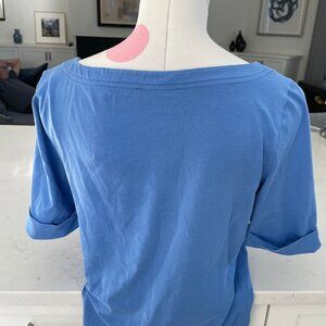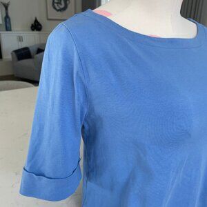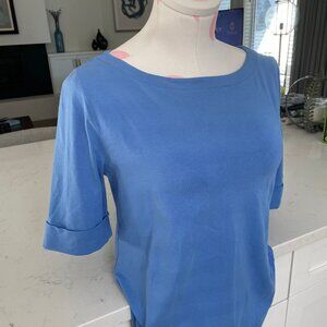 Jones New York Signature Casual Boatneck Cuffed Short Slv Cotton Top Blue Sz M