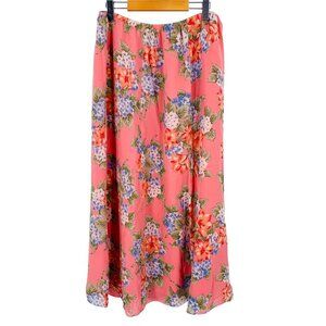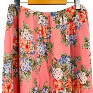 Jones New York Signature Midi Skirt Womens 1X Pink Orange Salmon Floral Silk