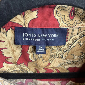 Jones New York Signature Red Gold Paisley Cotton Button Up Shirt Womens 2x