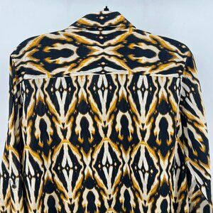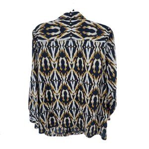 Elevate your wardrobe with this chic Jones New York Signature button-down shirt in women's size 1X. Crafted from 100% breathable cotton, it features a bold abstract print in black, white, and gold tones—perfect for adding a sophisticated flair to any outfit. The long sleeves and classic collar make it ideal for both work and weekend wear. Whether paired with jeans or slacks, this versatile piece is sure to turn heads.