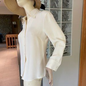 Silk blouse with button-down front. Long sleeves and classic collar. Perfect for any occasion.