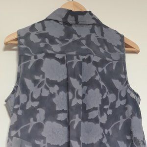 Jones New York Sleeveless Shirt, Semi-Sheer with Floral Pattern, Blue, Sz. M