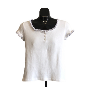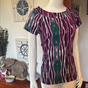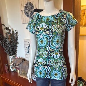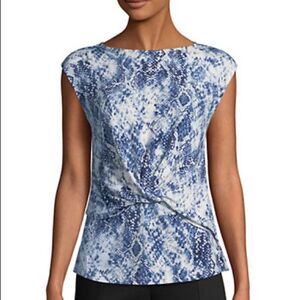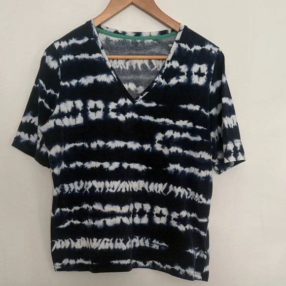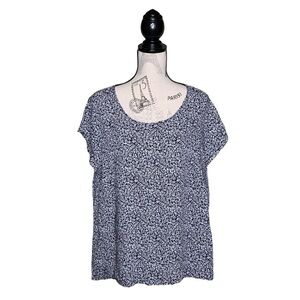 Jones New York Sport Women Blue White Short Sleeves Pullover Top Size XL