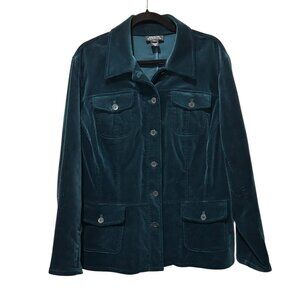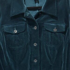 Jones New York Teal Blue Velvet Barn Jacket • Womens Plus Size 2X • Button Front