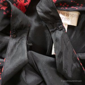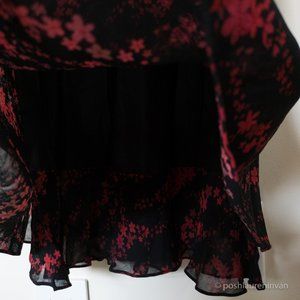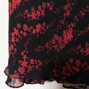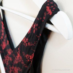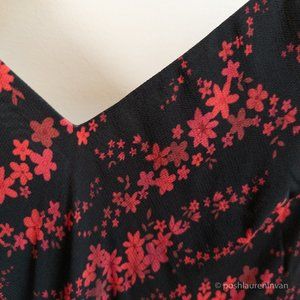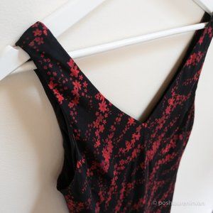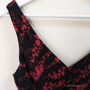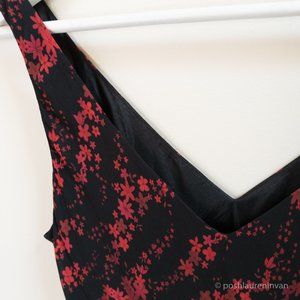 Sleeveless black dress with dark red flowers
