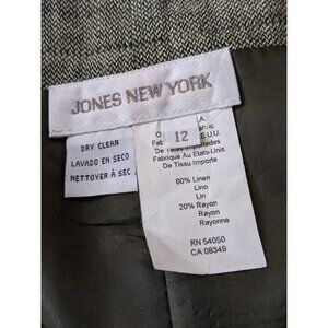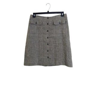 Jones New York Vintage Linen Blend Skirt Womens 12 Gray Button Front Pockets