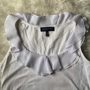 Classic white sleeveless blouse with ruffle collar