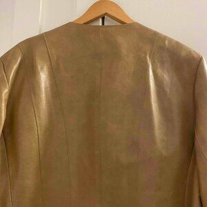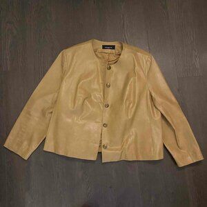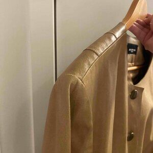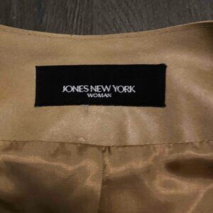Jones New York Leather Jacket, Women's Size Large, Classic Leather Jacket, Jones New York Outerwear, Black Leather Coat, Timeless Fashion Staple, Vintage-Inspired Jacket, High-Quality Leather, Stylish Women's Jacket, Casual Chic Outerwear, Designer Leather Jacket, Elegant Fall Fashion, Wardrobe Essential, Soft Leather Coat, Jones New York Apparel, Sophisticated Women's Wear.