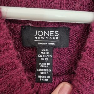 Tags: Jones New York, women’s sweater, turtleneck pullover, fuchsia knitwear, cozy winter sweater, classic women’s clothing, fall fashion, cold weather outfit, warm knit top, long sleeve sweater, casual layering piece, timeless style, office to weekend wear, plus size fashion, soft stretch sweater, Signature collection
