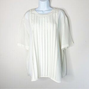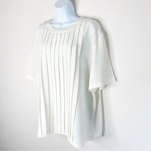 Jones New York Women's Pleated Blouse Short Sleeve Cream Size 18 Y2k 2000s