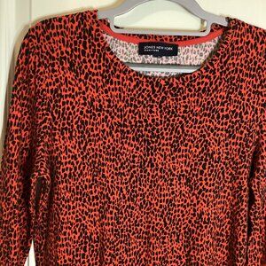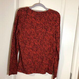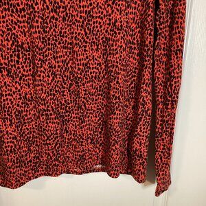 Jones New York Women's Red Black Long Sleeve Leopard Print Top Size M Stretchy