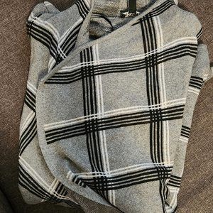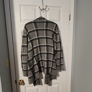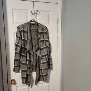 Gray cardigan with black and white stripes