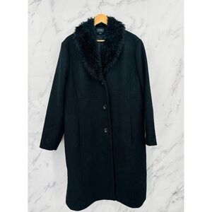 Jones New York Wool Faux Fur Collar Maxi Coat