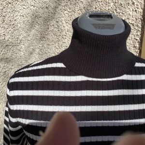 Size small black and white short sleeve turtle neck sweater. Good for cooler spring temperatures. Like new condition. Only worn a few times. Bottoms of sleeves in perfect condition