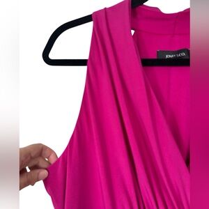 Jones New York hot pink sleeveless vneck midi dress, 16, tiered, ruched, Sexy