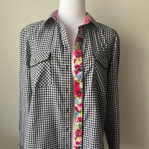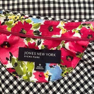 Jones New York signature Gingham Black and white button up shirt floral collar and cuff details on the inside Size M * 100% cotton *Elevate your Style with this wardrobe staple * * Modest * Elegant * Western*Y2K* outdoors* wear it with Jeans or pants * spring summer*