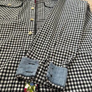 🖤Jones New York signature Gingham Black and white button up shirt Sz M