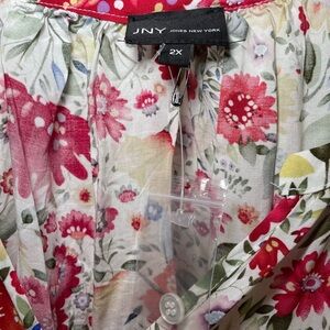 Jones New York white with pink, red, and yellow floral print sz 2X