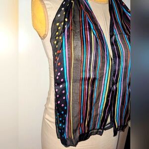 Jones New York 100% Silk Sheer Rainbow Stripe Polka Dot Long Scarf