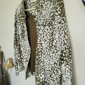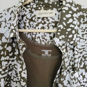 2 pieces matching Jones of New York T shirt and Blouse in brown and white medium
