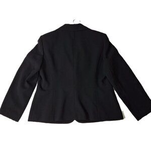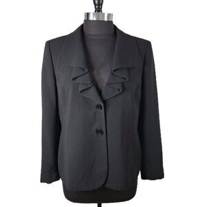 Jones Studio Ruffle Lapel Collar Career Suit Jacket Blazer Sz 12 Matte Black Relaxed Office Smart Holiday Evening Fully Lined Vintage Y2K Feminine