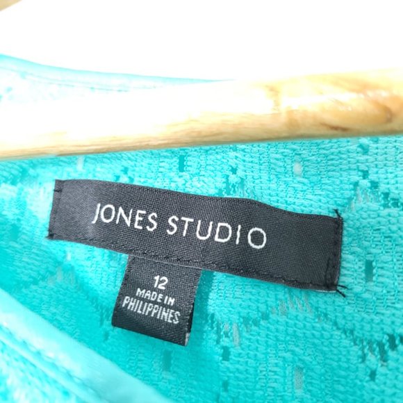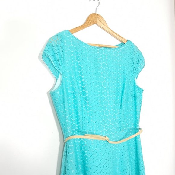 Jones Studio Teal Cap Sleeve Belted Knee-Length Sheath Overlay Dress Size 12
