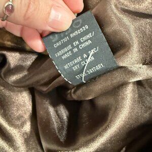 Condition: Good. Small hole on seam on back and another where one of the "eyes" of the hook and eye are. No stains.