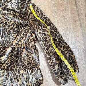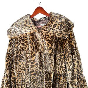 Jones Studio Tiered Faux Fur Coat Leopard Print Brown Mob Wife Glam M