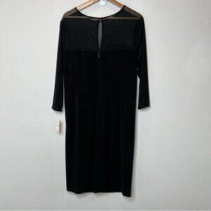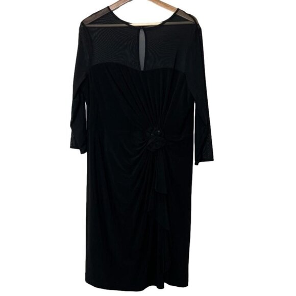 Jones Studio Womens Size 16 Black Mesh Chest Sheath Dress NEW Rosette 3/4 Sleeve