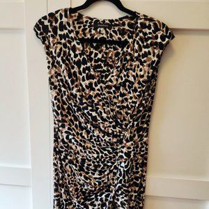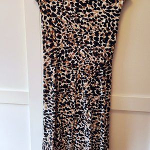 This great looking dress is stretchy and sleeveless. Has shoulder pads Pit to pit is 19 Length from shoulder is 40.5.