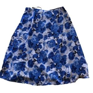 Jones wear Blue Floral Print Midi Slip Skirt.