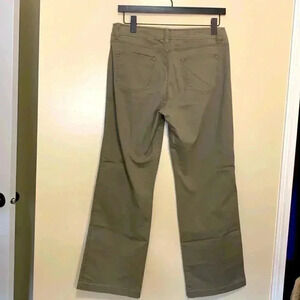 These are in excellent used condition. High-rise and a wide leg. They are 98% cotton and 2% spandex, so they have some nice stretch..