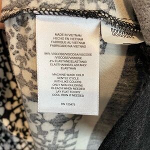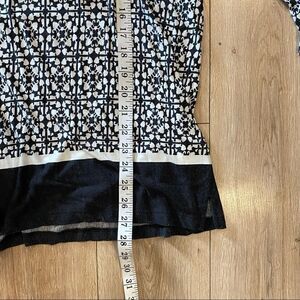 Picturing a black and white printed viscose elastane womens tunic top by Jones New York Signature in a size medium.