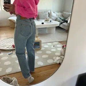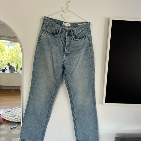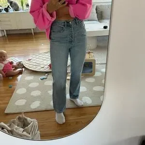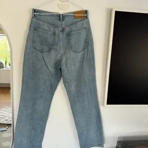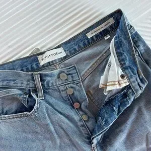 Timeless blue jeans with button fly. Ideal for everyday style.