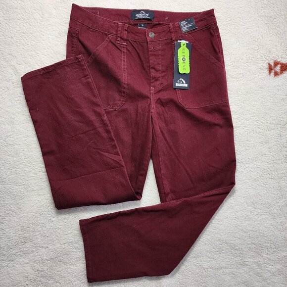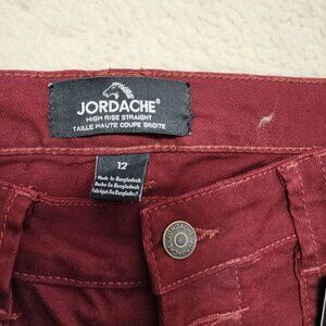 Jordache High Rise Utility Straight Leg Burgundy Jeans Size 12 Button Fly