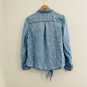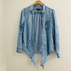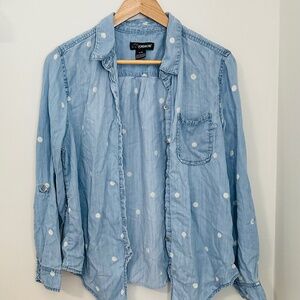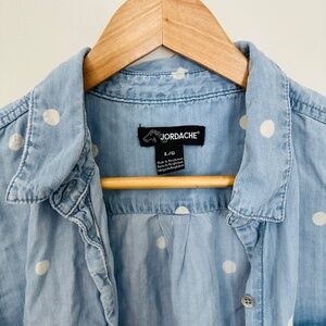 Jordache Long Sleeve Button Up Blouse Lyocell Light Blue White
