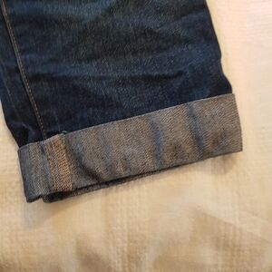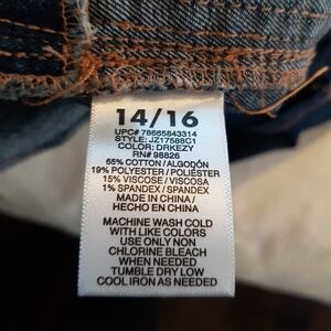 Jordache girls size 14/16 cropped jean overall, the flipped over cuff is sewn in place, they have a good amount of stretch, adjustable straps, buttoned sides, 3 front 2 back pockets