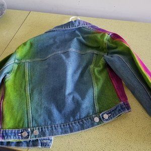 Amazing quality premium jean jacket made in the U.S.A with edgy neon pink and yellow spray paint design.