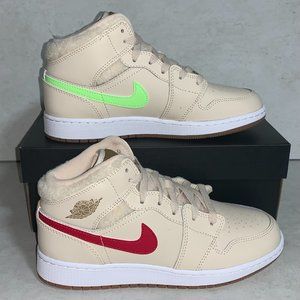 Jordan 1 Mid Fleece Pearl White GS 6Y/7.5W