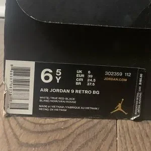 Jordan IX Gently Used Condition White, Black, Red Size 6.5 With Box