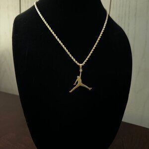 Jordan Necklace - Jumpman Pendant MJ - Gold Plated - 20" Rope Chain - Easter